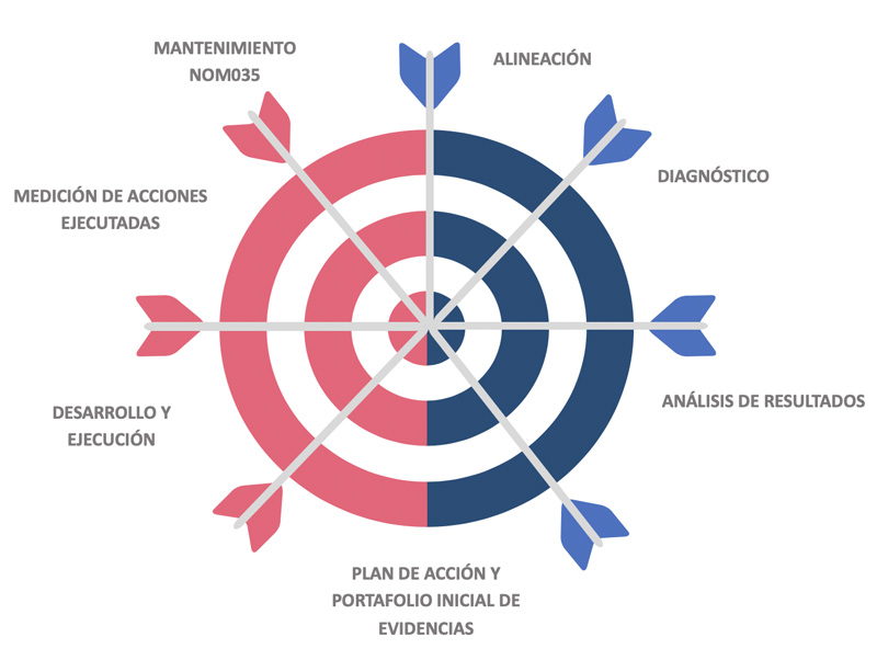 - Acompañamiento y asesoría en el proceso de cambio generado por la implementación de la NOM035